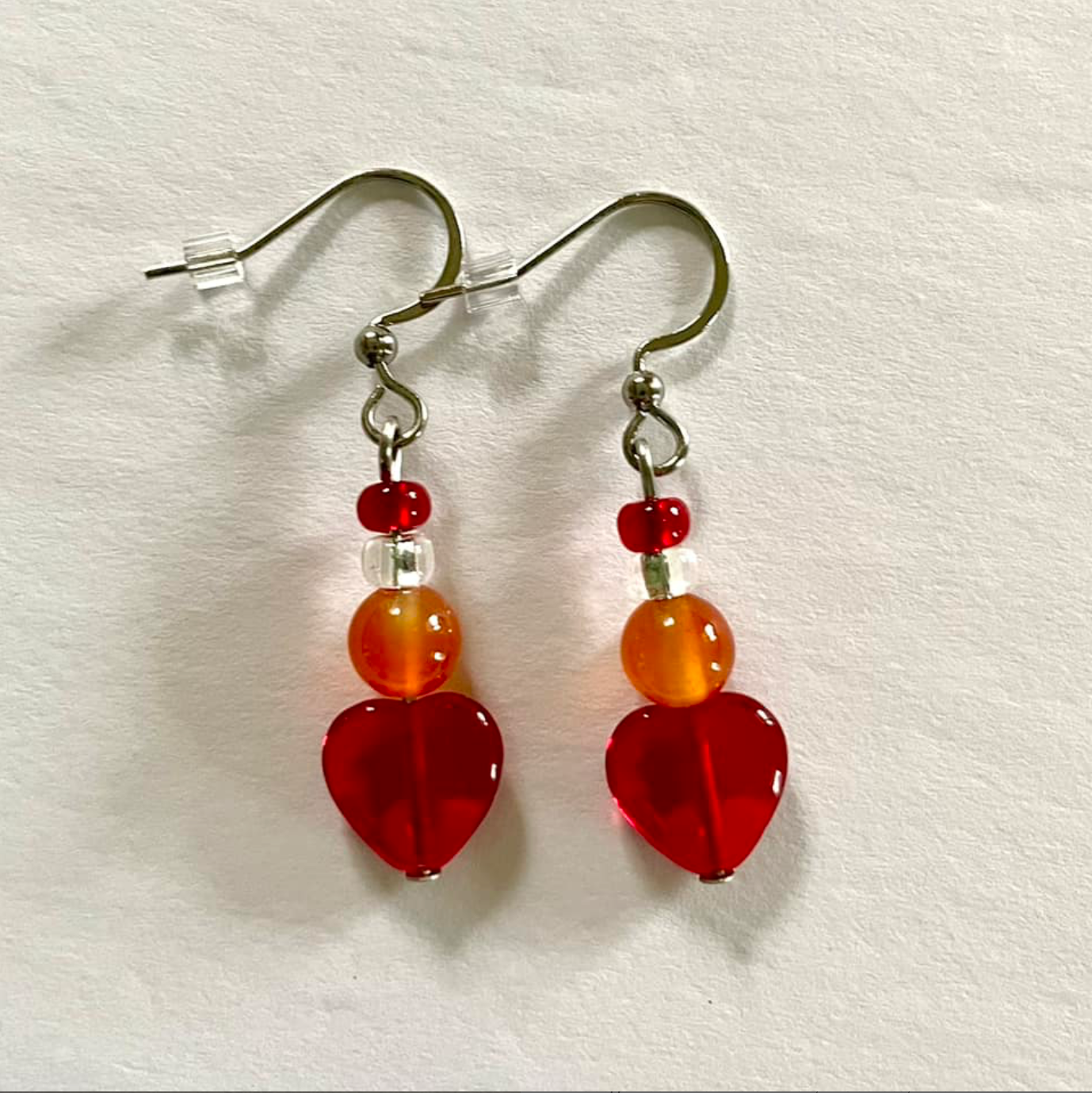 Love and Optimism earrings in crystal and carnelian. Matching bracelet not included but available on another page. Symbolism: love, passion, optimism, healing.