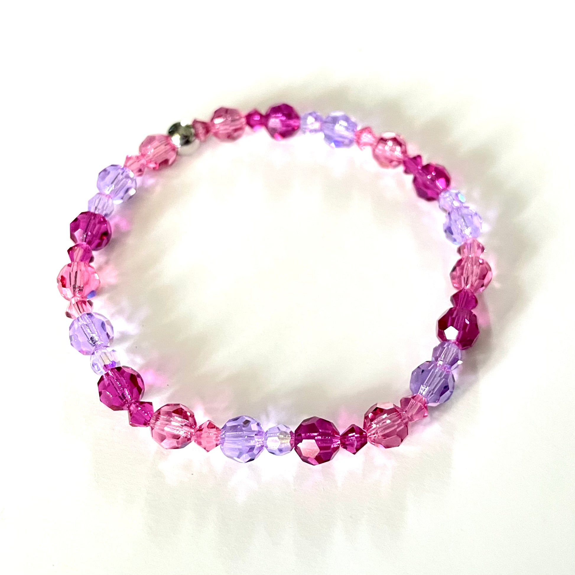 Bracelet Bonheur en cristal véritable de 6 et 4mm, cache noeud en inox. Cristal Fuchsia, rose et lilas. Cristal d'un grande qualité et faceté à la perfection.