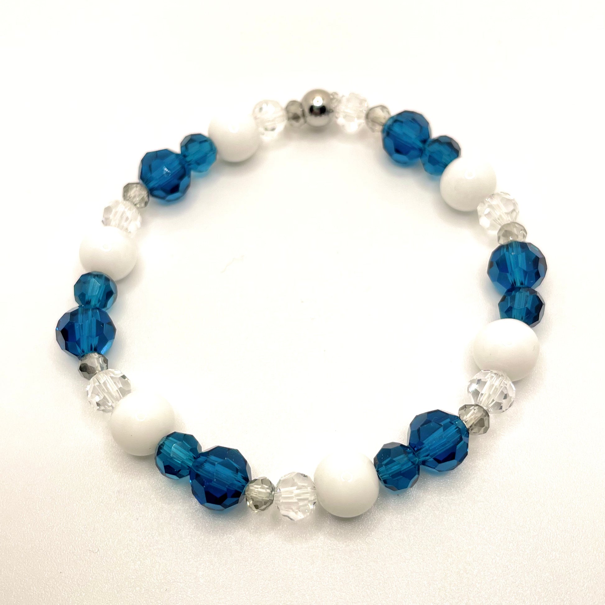 Bracelet "Sérénité" en cristal blanc cristal clair, cristal bleu sarcelle et inox. Billes de 8mm, 6 et 4mm.