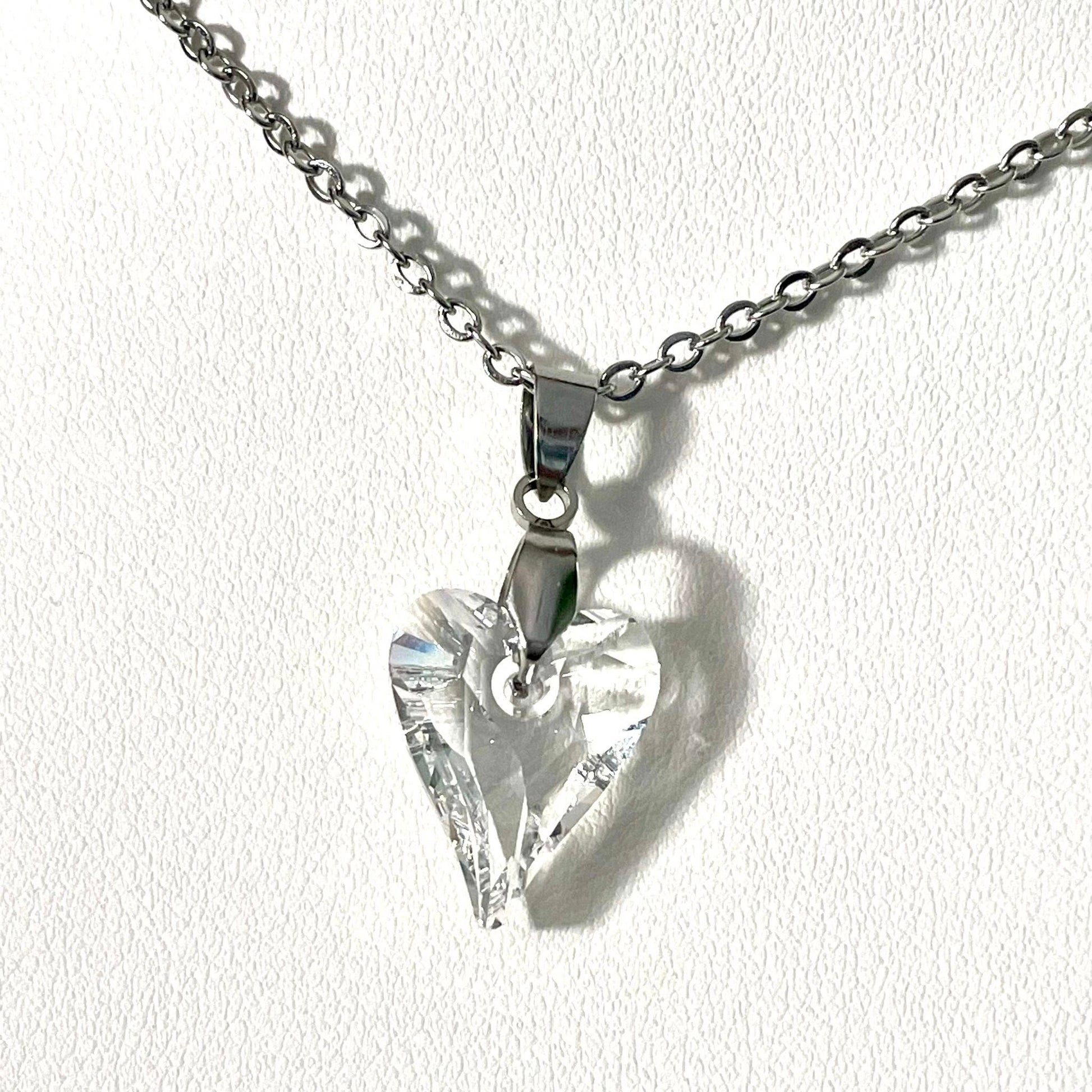 Superbe collier gros coeur sauvage en cristal noir opaque mis en valeur avec une chaîne en acier inoxydable qui ne ternit pas. Dimensions du coeur: 17mm x 14mm. Boucles disponible sur une autre fiche.