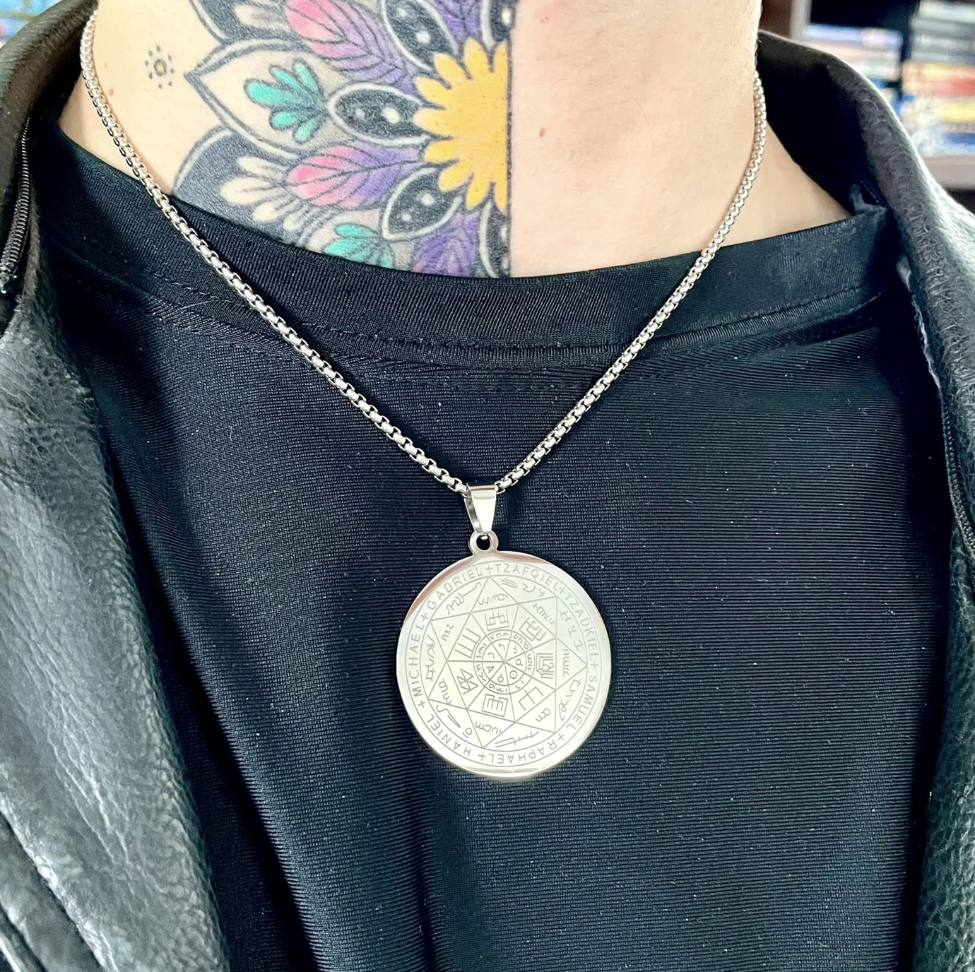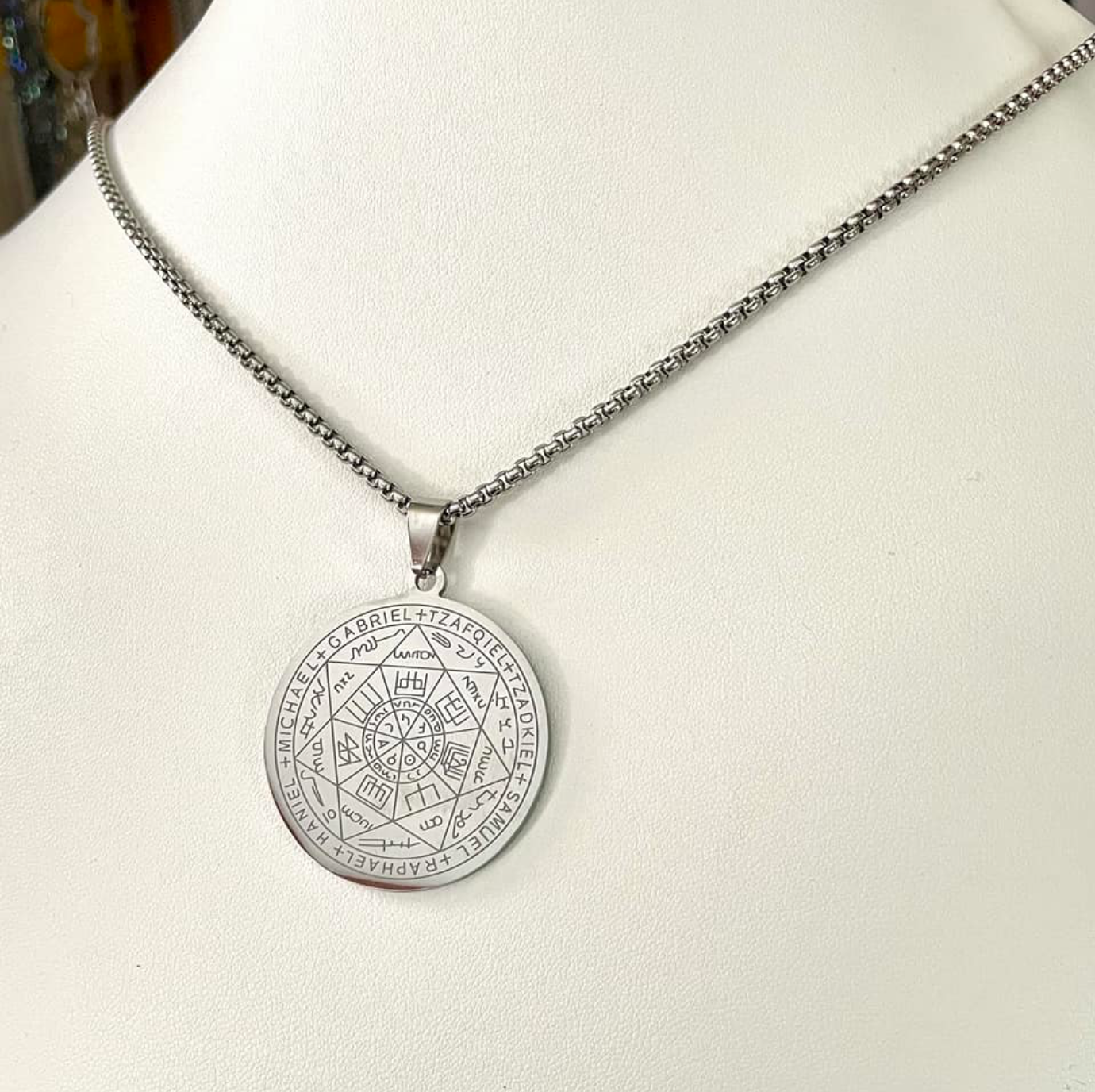 Pendentif Protection des 7 Archanges en inox. C’est une protection très puissante contre toutes les énergies négatives. Il confère confiance et abondance.Il contient le noms des 7 archanges : Michael, Raphael, Gabriel, Tsafkiel, Zadkiel, Samuel et Haniel. Collier unisexe. Dimension: 38 x 38mm